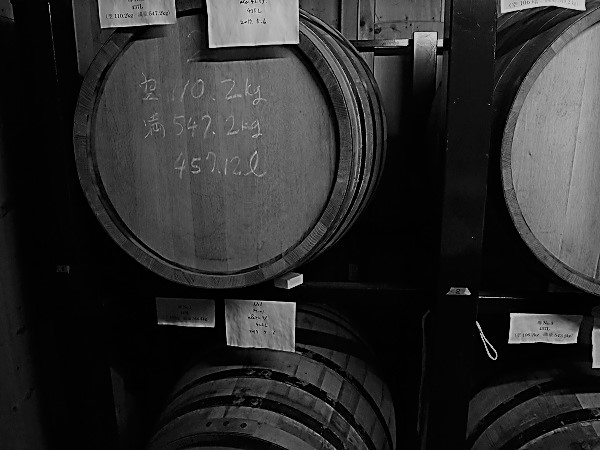 次の世代につなぐ宝物の焼酎。樽で寝かされた焼酎は、黄金色に色つき美味しさも増していきます。