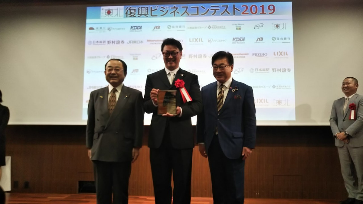 「新しい東北」復興ビジネスコンテストで大賞を受賞し、復興大臣並びに副復興大臣より表彰して頂きました。
