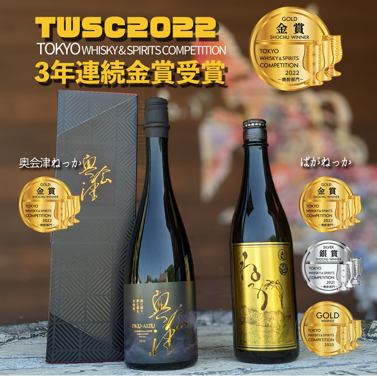 2022年5月28日 3回目となるTWSC(東京ウィスキー&スピリッツコンペティション)2022で、ばがねっかが2度目の金賞、奥会津ねっかが初の金賞を受賞しました! 出品酒全て金賞を受賞することが出来て、本当に嬉しいです。 これからも美味しいお酒を作り続けていきますので、引き続き応援宜しくお願い致します。 焼酎部門結果 https://tokyowhiskyspiritscompetition.jp/winnersresult/
