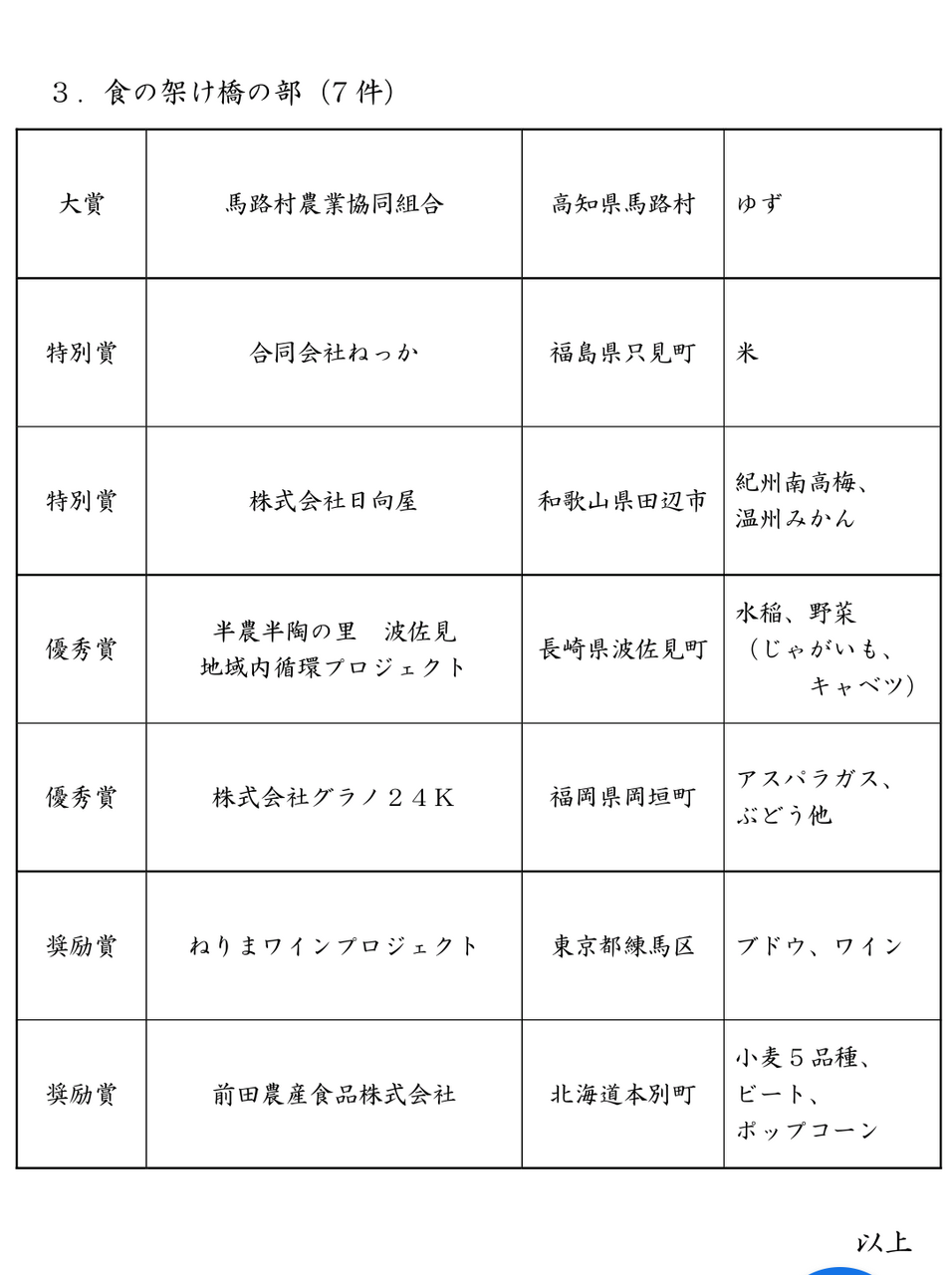 NHKとJA全中、JA都道府県中央会が主催している第52回日本農業賞食の架け橋部門で、特別賞を受賞しましたのでご報告致します。