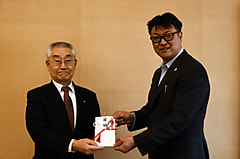 只見線応援ラベル寄付金を只見町町長に手渡しました!